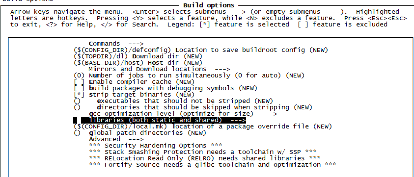 c、退回上一级,在Build options中,将libraries设置为(both static and shared),支持静态库和动态库。(猜测可能和应用层软件运行过程中,动态加载库有关系)