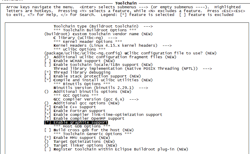 Enable graphite support等五个选项,使能编译功能。