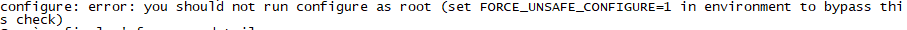执行 echo “export set FORCE_UNSAFE_CONFIGURE=1” >> /etc/profile